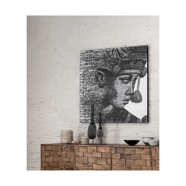 The Balinese Komang canvas by MUST Living adds a spicy touch to the walls. This canvas represents a Balinese woman with traditional and authentic jewels of the island. It has a size 100x100 cm and available in black and white. Canvas painting will sublimate the living room wall.
