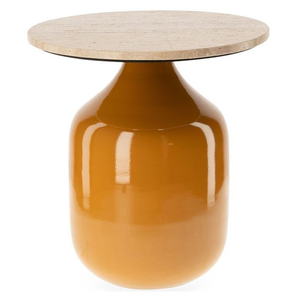 The Madala sofa end is an elegant addition to the living space. Measuring Ø40x50 cm, it has a compact and versatile circular design. This piece is made from a combination of iron and travertine, offering an interesting mix of materials. The Madala sofa end is available in a selection of colors to suit style preferences.