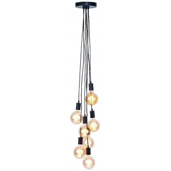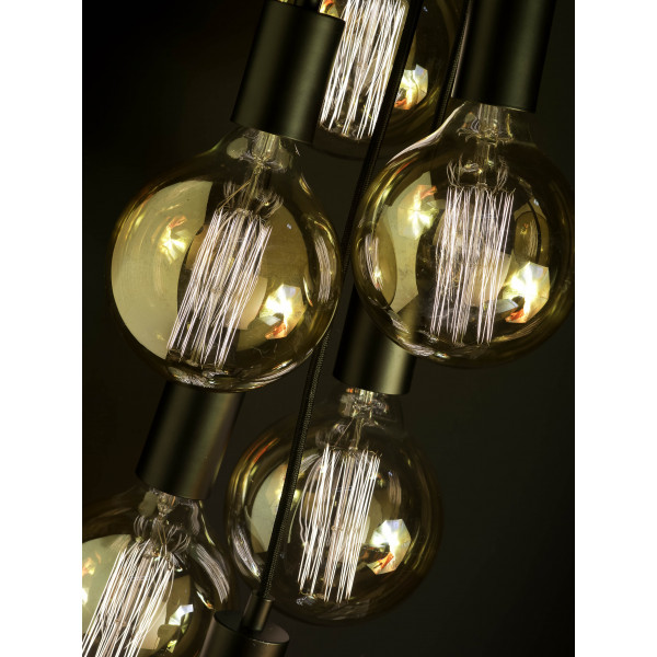 By combining the Oslo 7-light pendant with decorative bulbs (not included), the ambiance will be unique and as desired. The light fixture has an adjustable height from 10 cm to 150 cm. Its width is 30 cm. The base measures 20x20x3.5 cm. The sockets are E27 standard.