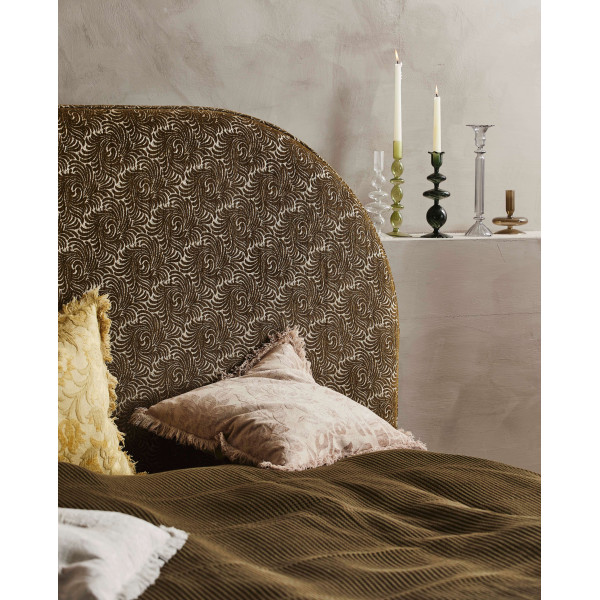 This magnificent Nova headboard provides a natural and warm atmosphere, ideal for the pleasant atmosphere of a bedroom. It is made entirely of sturdy MDF with an olive green and gold jacquard powder coating. It is attached to the wall with two hidden metal supports to create a magnificent designer headboard. This model 181x5x75 cm.