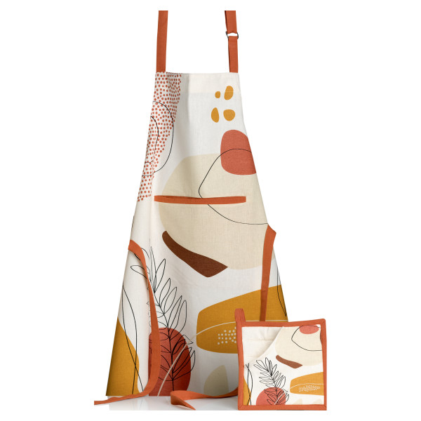 To protect clothes in an original way thanks to this Legno kitchen apron and its captivating abstract design. Made of 100% cotton with a loose fit, this apron provides optimal protection against possible splashes in the kitchen. Its practicality is reinforced by an adjustable fastener that makes it suitable for all body types. Plus, it features a front pocket to keep favorite utensils close at hand. This Legno apron harmonizes perfectly with the 2 in 1 tea towel and potholder from the same collection. Its dimensions are 50x70 cm and it has multicolored hues.