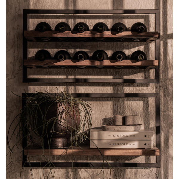 This Type A 12-bottle wine rack is a wine rack designed to harmonize perfectly with our shelves. Practical and elegant, it allows you to highlight your favorite bottles of wine in a fun way. This wall-mounted wine rack is handmade from reclaimed teak and hand-soldered iron. You can hang it alone or combine it with other Shelfmates bottle holders or shelves. Type A can hold up to 12 bottles of wine. Its dimensions are 65x25.5x35