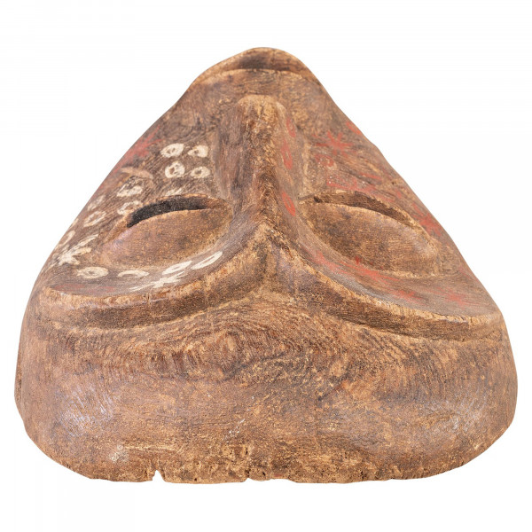 This AAA769 Igbo mask offers the best remarkable ethnic decoration inside. It is carved in wood with a size of 24x33x60 cm. This Versmissen item is unique for its authenticity in DR Congo dating from the middle of the 20th century. This Ituri mask is a true African art to constitute history representing a diviner who sees far into the invisible world. And so it protects against any threat or danger.
