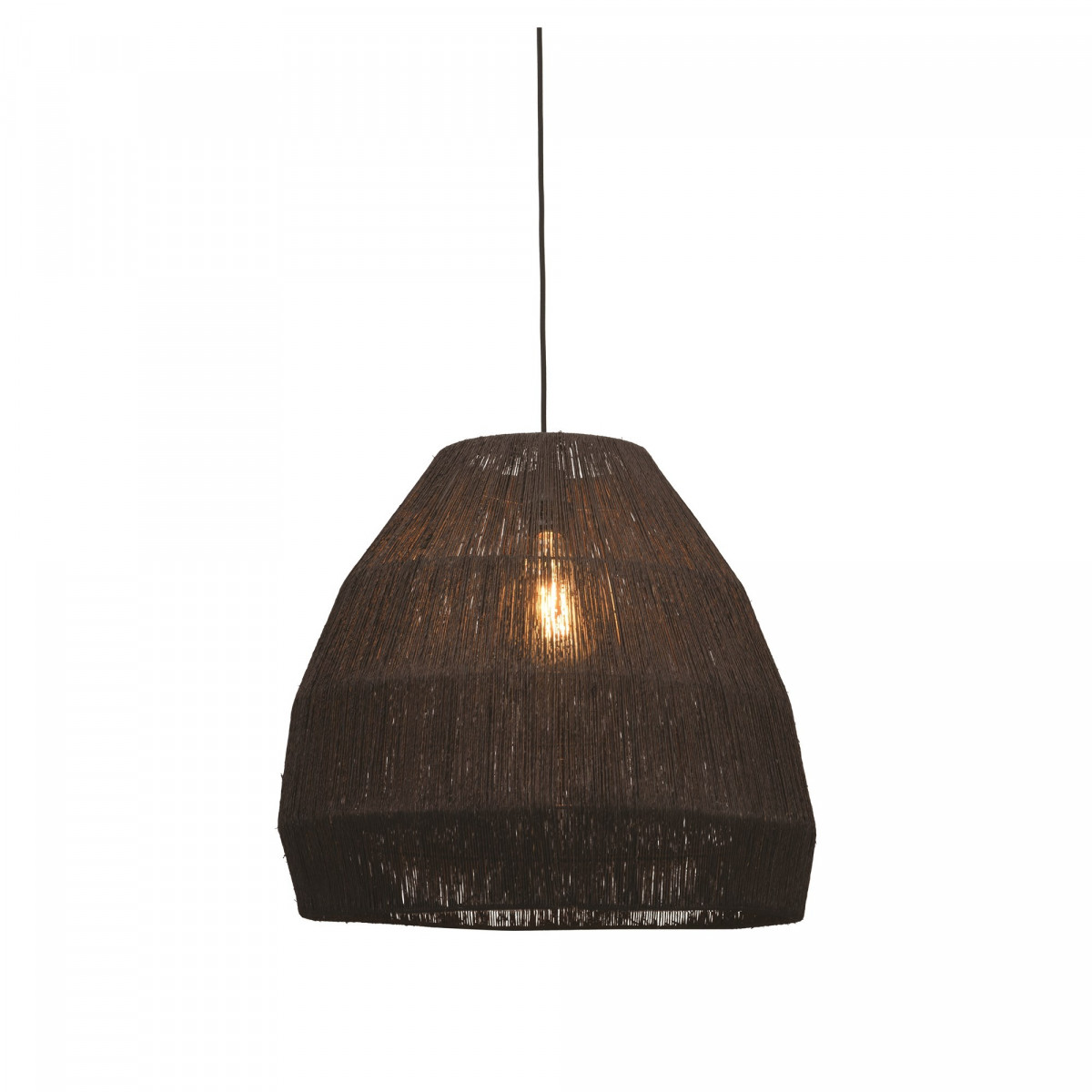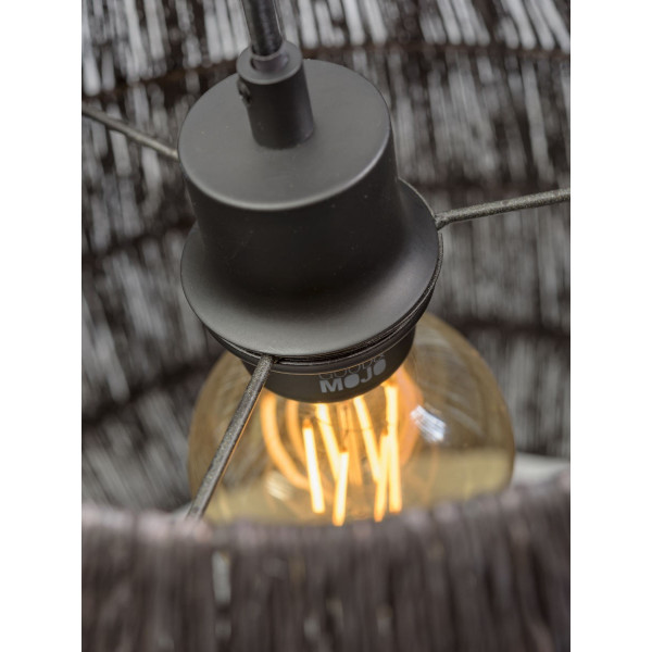 The conical Iguazu pendant lamp, made of jute fiber and iron, seduces immediately with its character combining naturalness and modernity. It adds a touch of conviviality to a room. This luminaire is characterized by a length of 60 cm, an adjustable height of 50 to 200 cm and a base size of 11 cm in diameter x 4 cm thick. This model has a lampshade with a diameter of 60 cm and whose height is 25 cm. This pendant lamp has an E27 base (bulb not included).