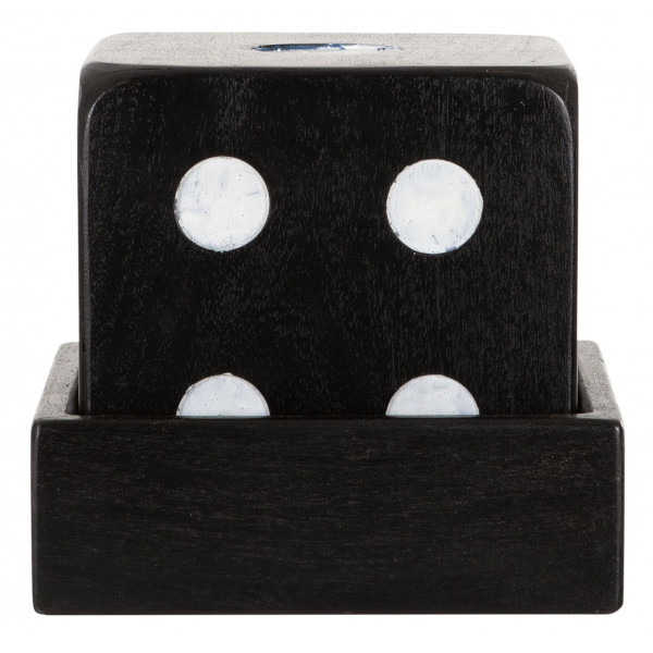 This decorative die measures 15x15x15 cm and is made of teak wood. It is suitable for game enthusiasts.