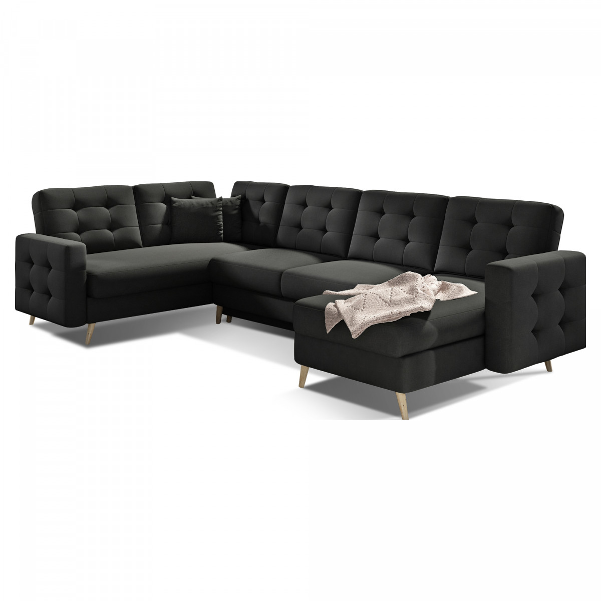 This Asgard panoramic sofa from Eltap will be the ideal solution for comfortable living room furniture that is adapted to size. It is designed in fabrics with a wooden base that follows modern design trends where simplicity meets refinement. It offers plenty of space to relax with its U-shape measuring 320x202x90 cm, with a seat height of 45 cm. Not to mention that this sofa can be converted into a 120x282 cm bed to relax perfectly during a nap. It is available in a wide choice of colors according to the taste and the dominant style of the room.