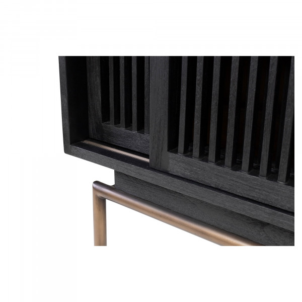 This Tellem sideboard is a furnishing accessory with an elegant and functional design, ideal as a dresser or storage unit for the dining room or living room. This beautiful piece of furniture is made of mindi wood and stainless steel with dimensions of 45x160x90 cm. It is in black and dark color.