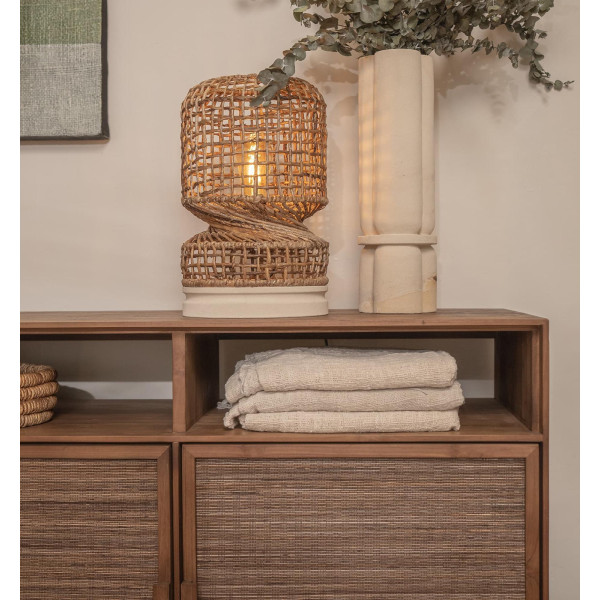 The Hopper sideboard with 4 doors is an elegant and discreet piece of furniture that will bring a touch of refinement to any space. This large dresser is handmade and has 4 open shelves as well as removable inner shelves. The doors are framed in teak with cleverly recessed edges and flattering teak handles. The door faces are covered with hand-woven coconut leaves. This piece of furniture is a desirable jewel in any contemporary or classic space. It measures 226x45x95 cm.