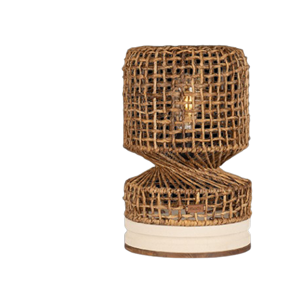 The Twister Table Lamp is a standalone fixture designed in a “fish trap” style using a metal frame and wrapped in Abaca bark to create a rustic and pleasant woven look. The lamps have elegant “twisting” details and are set on a solid, hand-turned sandstone base, providing both stability and security.