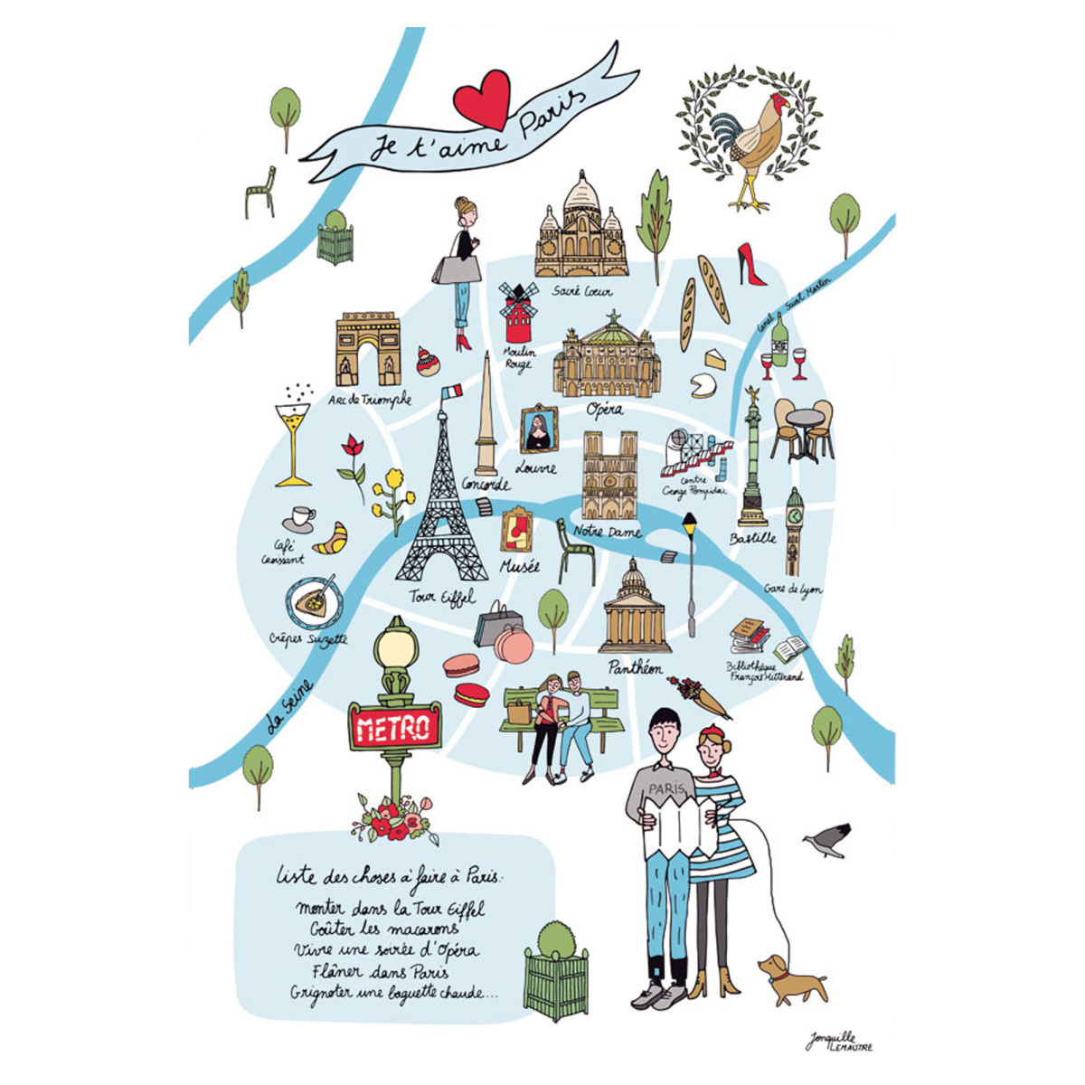 Discover the treasures of Paris and its emblematic sites by inspiring a Carte Paris tea towel. With its original and colored design in ecru, this 100% French cotton tea towel is perfect for wiping dishes while transporting to the magnificent capital. It has a dimension of 48x72 cm.