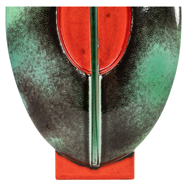 The Iris vase is an elegant decorative piece measuring 13x21.5x40 cm. It is made from high-quality earthenware to ensure durability and strength. This vase combines green and red colors for a unique style. The shape of the Iris vase is long and narrow, with soft, elegant curves.