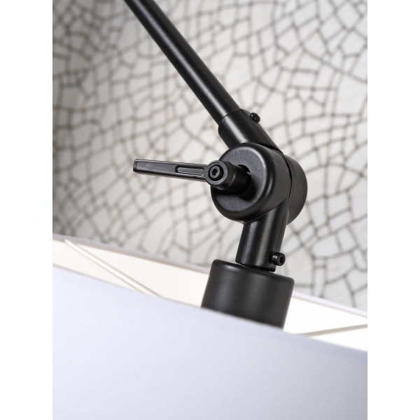 The Amsterdam wall lamp with two joints will perfectly complement the lighting of an interior room. This fixture is equipped with an articulated iron arm and a cotton lampshade. Once installed, it will immediately create a warm atmosphere. This lamp has a height of 30 to 60 cm, a width of 65 cm to 85 cm, and a base of 7.5x7.5 cm. It features an E27 socket (bulb not included).
