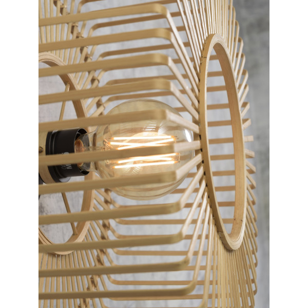 L'applique Good&Mojo Bromo è una lega di supporto a parete in ferro e un paralume cilindrico in fibra di bambù. Le fibre di bambù forniscono un eccezionale effetto luminoso. Questa lampada da parete rotonda funziona con una presa E27 e una lampadina da 60 W (non inclusa).