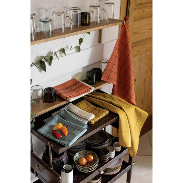 Questo canovaccio è realizzato con una miscela di 50% lino e 50% cotone ed è appositamente progettato per pulire i bicchieri in modo ottimale. Disponibile in tre colori di tendenza, può essere abbinato elegantemente alla sua versione a righe per un effetto elegante. Ha una dimensione di 50x70 cm.