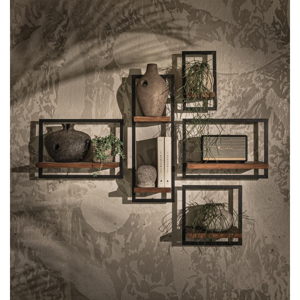 La mensola Setup 3 è un sistema di archiviazione unico, composto da contenitori di varie dimensioni per abbellire la parete in modo pratico ed elegante. Le mensole sono realizzate a mano in ferro e legno di teak di recupero proveniente da vecchie case giavanesi. Appendi gli scaffali da soli o combinati tra loro: le possibilità di composizione sono infinite. Con le sue dimensioni di 150x25,5x115 cm, questo prodotto è ideale per uno spazio di archiviazione limitato e aggiunge un tocco di