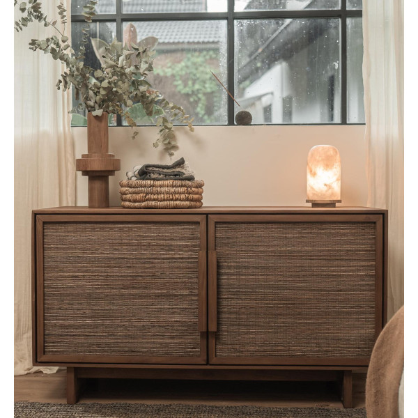 La cassettiera Hopper a 2 ante è un bellissimo mobile basso realizzato a mano utilizzando varie tecniche artigianali. Questo comò è realizzato in teak riciclato, ha gambe massicce e due ante realizzate con tessuti resistenti e fatti a mano realizzati con le fibre principali delle foglie di cocco. Le due eleganti ante strutturate nascondono due ripiani interni. Con una dimensione di 107x45x60 cm, questo comò è sia funzionale che estetico e porterà un tocco di originalità