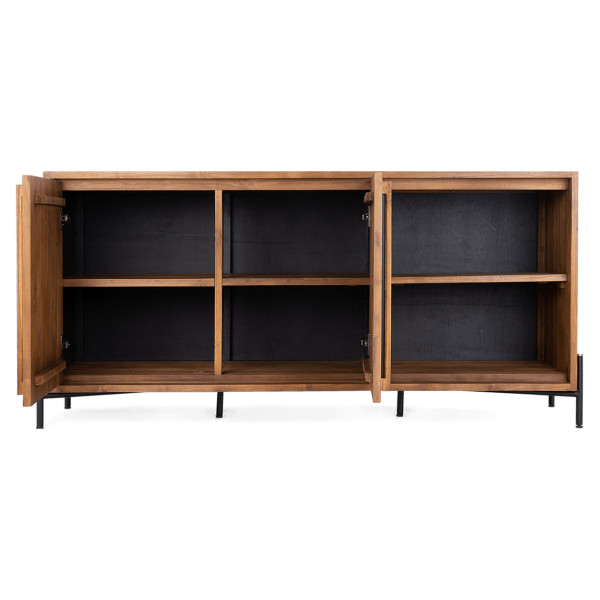 L'armadio Outline è un bellissimo mobile in legno dal design pulito che si adatta perfettamente a qualsiasi stanza. Realizzato in legno di teak di recupero, è sostenuto da gambe in ferro. Con i suoi scomparti chiusi e i ripiani aperti, le possibilità di archiviazione ed esposizione sono infinite. Misura 154x42,5x70 cm, è un mobile ricco e imponente che aggiungerà carattere