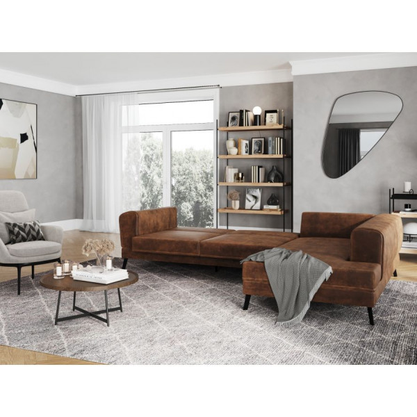Questo divano imperiale per mancini è perfetto per aggiungere un tocco classico a un soggiorno o a una stanza. Questo divano dal design moderno seduce il centro della stanza grazie alla sua finitura in tessuto in stile industriale e ai suoi materiali in legno, metallo e compensato. Con i suoi numerosi vantaggi, è convertibile e dispone di 2 grandi casse portaoggetti. La seduta e lo schienale sono imbottiti con schiuma per un tocco morbido e liscio. Questo divano marrone a 4 posti ha dimensioni di 212x303x86 cm.