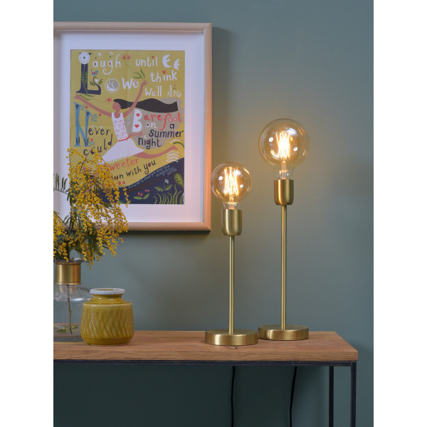 La lampada da tavolo Cannes brilla di mille luci grazie al suo stile, alla sua fabbricazione in ferro e al suo colore dorato. Ha una base di 12x12x2,5 cm ed è disponibile in due dimensioni: 30 o 37 cm di altezza. La lampada funziona con una lampadina E27 (non fornita).