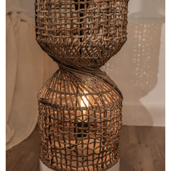 La lampada da terra Twister è una lampada autoportante progettata con un design a «rete» utilizzando una struttura in metallo e sapientemente avvolta nella corteccia di abaca per creare un aspetto rustico e piacevole intrecciato. Le lampade vengono quindi pizzicate e attorcigliate, rivelando eleganti dettagli tortuosi e poggiate su una robusta base in pietra arenaria tornita a mano