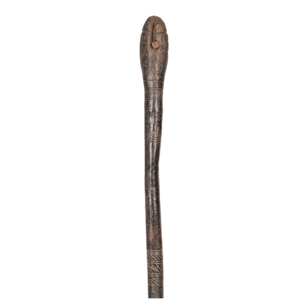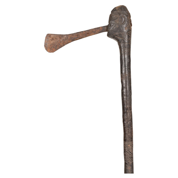 Questa ascia cerimoniale yoruba, originaria della Nigeria, è un bell'esempio di arte e cultura africana. Risale alla metà del XX secolo e misura 22x4x58,5 cm. L'ascia è composta da una lama in ferro battuto e da un manico in legno intagliato. Il manico è decorato con una figura umana, che rappresenta un antenato o una divinità. Le asce cerimoniali yoruba venivano utilizzate durante le cerimonie ufficiali o per mostrare ricchezza. Servivano come simbolo di rango e autorità e venivano indossate sulla spalla quando il proprietario si spostava. È un pezzo unico.