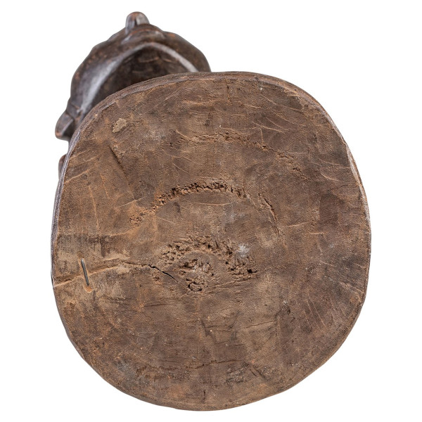 La scultura rappresentata è un'opera di Hemba, di 54,5x14x11 cm, originaria della Repubblica Democratica del Congo e datata alla metà del XX secolo. Questo pezzo è caratteristico dell'arte Hemba, nota per la sua rappresentazione di figure ancestrali. In quanto contenitore spirituale, questa figura avrebbe dovuto facilitare la connessione tra il mondo degli antenati e quello dei vivi, svolgendo un ruolo importante nei rituali e nella credenza nell'aldilà