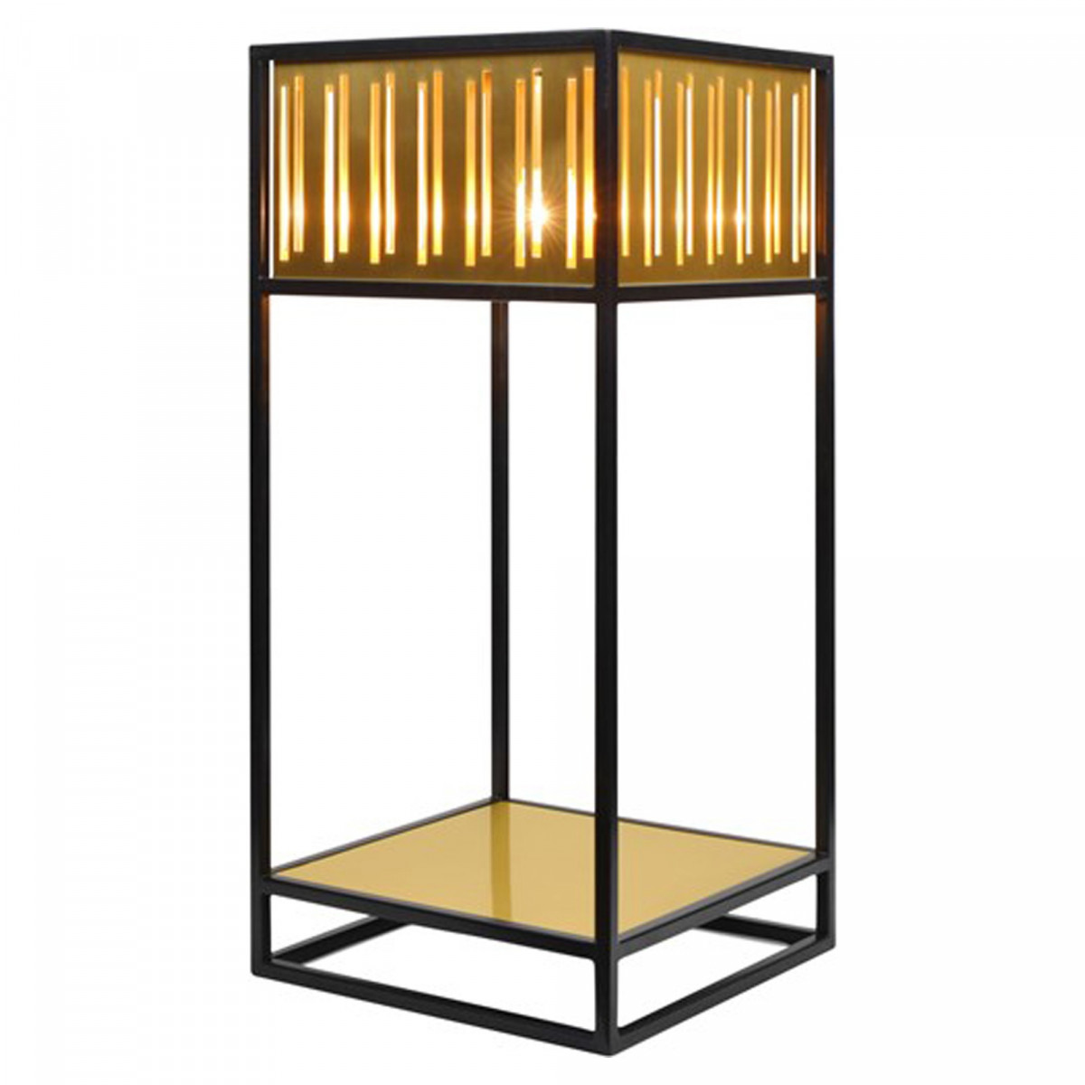 Per un compagno ideale, questa lampada da tavolo Oriente darà un'illuminazione d'accento a un tavolo. È realizzato in acciaio e ottone con una dimensione di 26x26x56 cm. Così la lampada è anche un attraente elemento decorativo per la stanza grazie al suo colore oro e nero. Questa lampada da tavolo si illumina con una lampadina E14 (non inclusa).