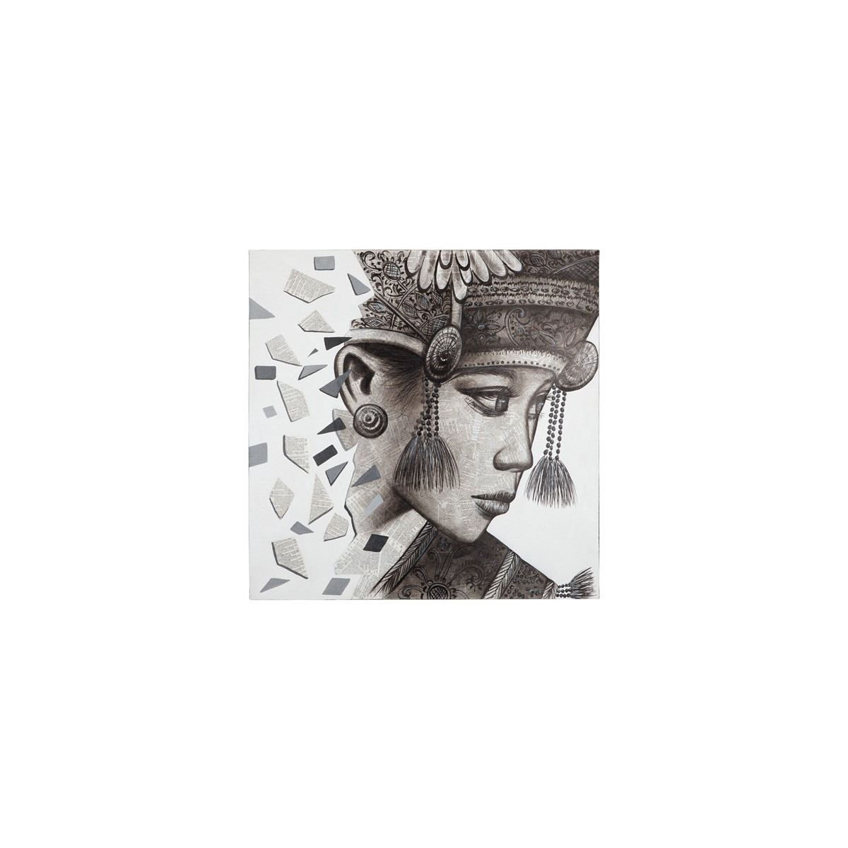 Questa arte murale balinese Ketut di Must Living esprime un autentico stile di vita olandese. Questa tela raffigura una donna balinese con gioielli tradizionali dell'isola di Bali. Ha una dimensione di 100x100 cm e un colore in bianco e nero. Questo quadro su tela aggiunge più decorazione alla parete del soggiorno.