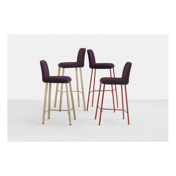 Lo sgabello Myra 658B è personalizzabile in termini di rivestimento in tessuto e legno della struttura a 4 gambe rotonde. Il comfort è assicurato...