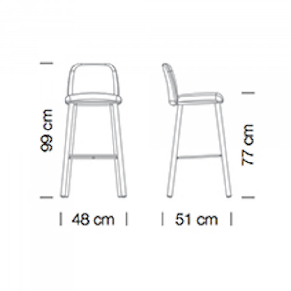 Lo sgabello Myra 658 seduce con il suo stile e la qualità della lavorazione. Il comfort è assicurato dalla tappezzeria nella seduta e nello schienale. Il suo aspetto è pulito grazie al rivestimento in tessuto personalizzabile e alla sua struttura 4 gambe rotonde in legno. Questo sgabello alto misura 48x51x99 cm. L'altezza della seduta è di 77 cm.