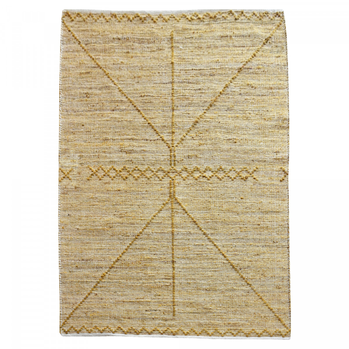 Con i suoi motivi e il colore oro, il tappeto Jiazi è una proposta rilassante per la decorazione d'interni. È realizzato artigianalmente a mano a partire da canapa per un risultato davvero ben rifinito, di qualità e durevole.