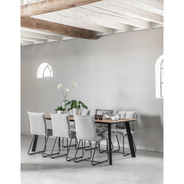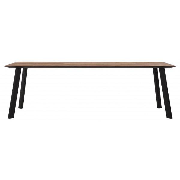 Il tavolo da pranzo rettangolare Shape della collezione Timeless è realizzato in teak riciclato con gambe in ferro nero. Il piano si assottiglia verso i bordi e ha una parte inferiore nera. Il tavolo da pranzo rettangolare Shape misura 250x100x78 cm.