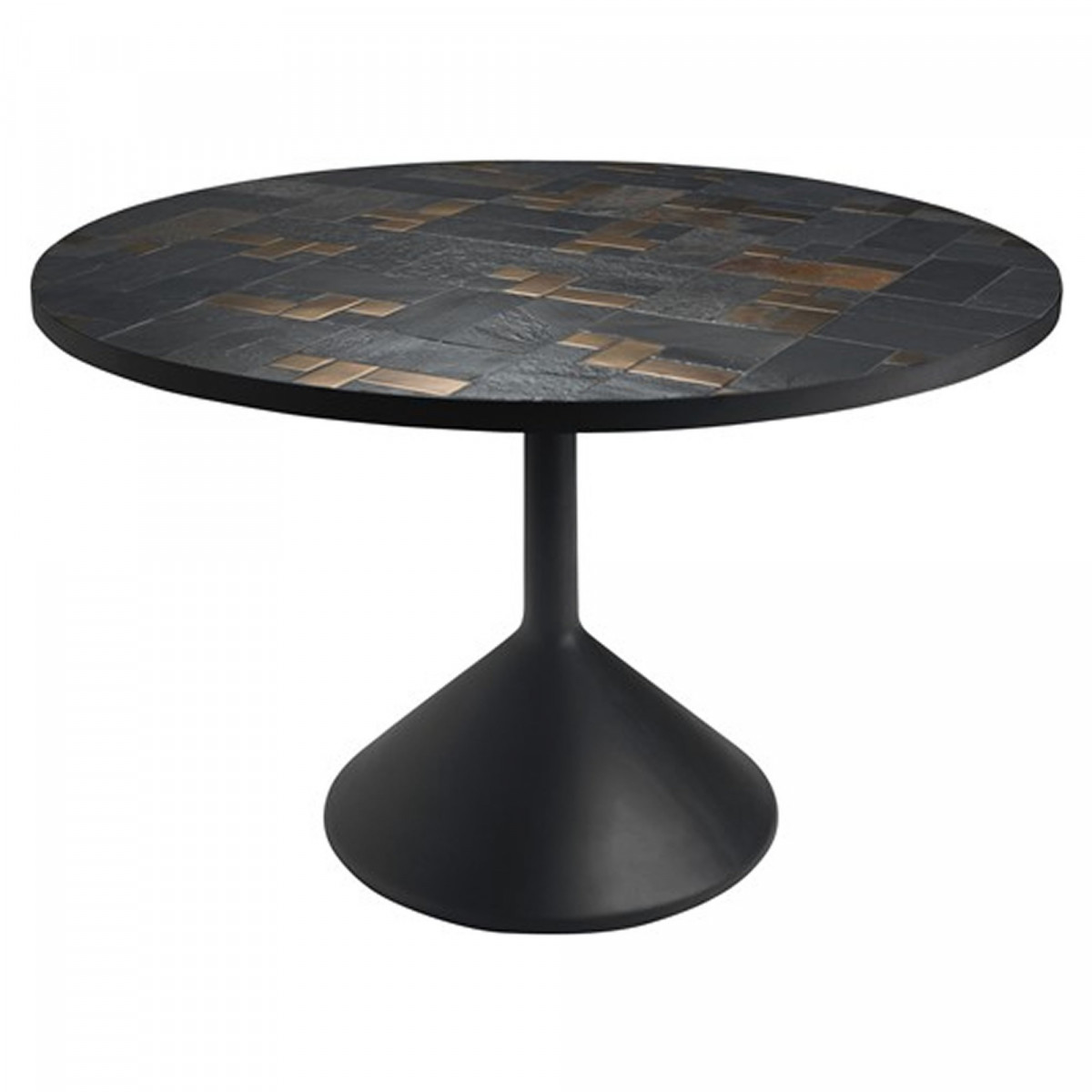 Questo bellissimo tavolo arrotondato è realizzato con una base in cemento, un piano in ardesia naturale e piastrelle in ceramica. Ti permette di gustare un buon pasto. Questo mobile ø120x76 cm è ideale per la sala da pranzo e offre convivialità e comfort.