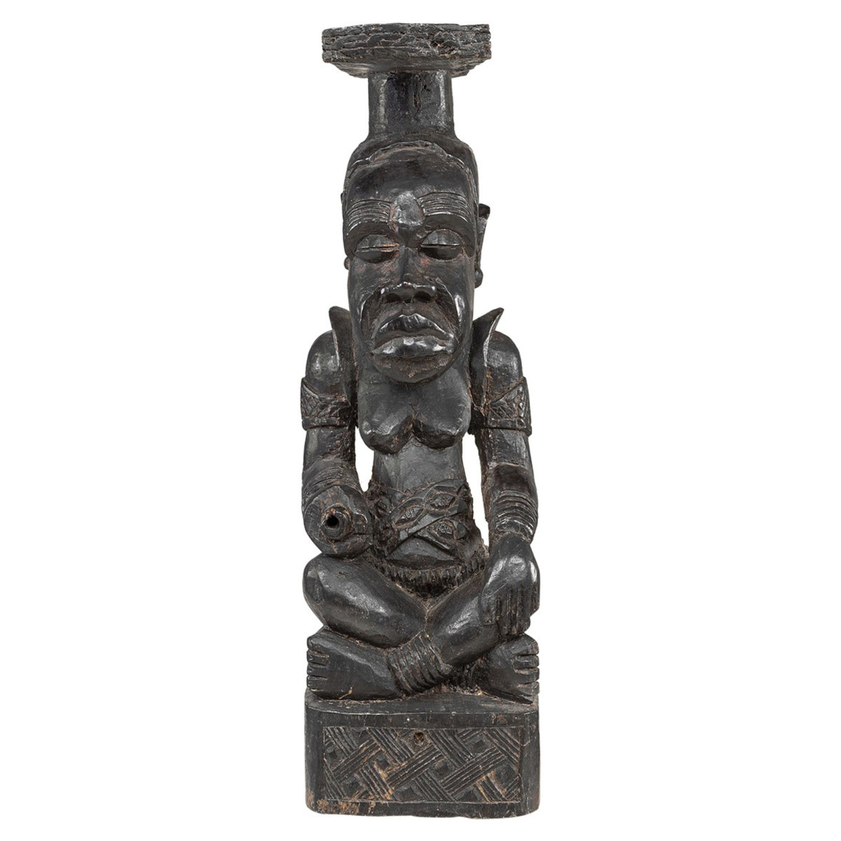 Tai medinė vyriškojo karaliaus Ndopo figūra, sėdintis sukryžiuotomis kojomis ant kvadratinės platformos (yiing), papuoštos šliaužiančio vynmedžio vaizdavimu. Ndopo statulos yra idealizuotos Kubos karalystės karaliaus Nyimi reprezentacijos. Ši unikali skulptūra iš Kongo DR datuojama XX amžiaus viduriu ir yra 16,5x15x50 cm.