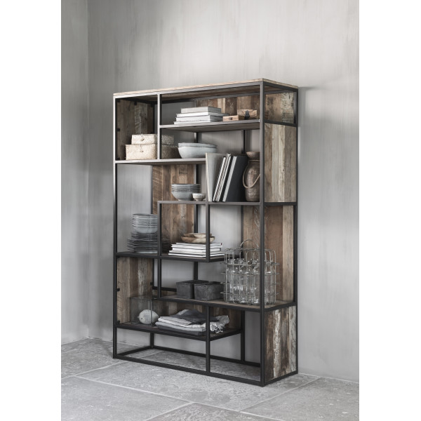 Tuarego lentyna pagaminta iš perdirbtos tikmedžio medienos ir turi juodo metalo struktūrą. Bibliotekos matmenys yra 120x40x180 cm.