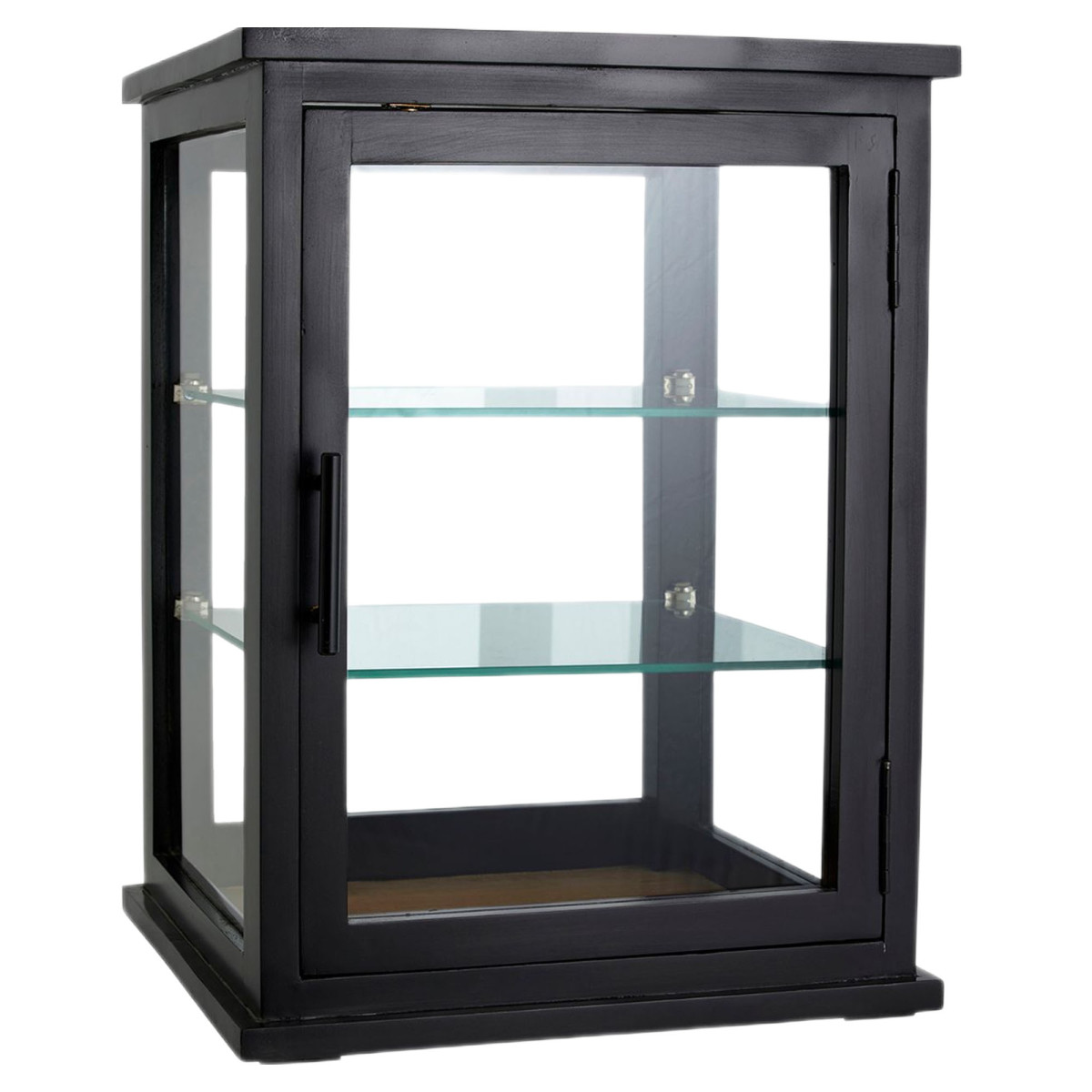Ši elegantiško ir klasikinio dizaino “Arno” vitrina yra dekoratyvi ir praktiška esamo namų dekoro papildymas. Paprasta ir praktiška, su dviem stiklinėmis lentynomis aksesuarams laikyti. Jis pagamintas iš juodai dažytos raudonmedžio medienos ir mango medienos interjerui, visa tai užtikrina jo tvirtumą ir ilgaamžiškumą. Jo matmenys 37x37x50 cm.