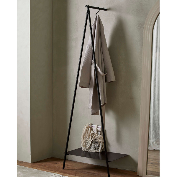 Ši “Ravi” drabužių lentyna idealiai tinka drabužiams tvarkyti ir rodyti bei laikyti dėl apatinės lentynos. Jis pagamintas iš patvarios geležies su juodu milteliniu dažymu, kuris turi madingą pramoninę išvaizdą. Šio gaminio matmenys 40 x 64 x 180 cm.