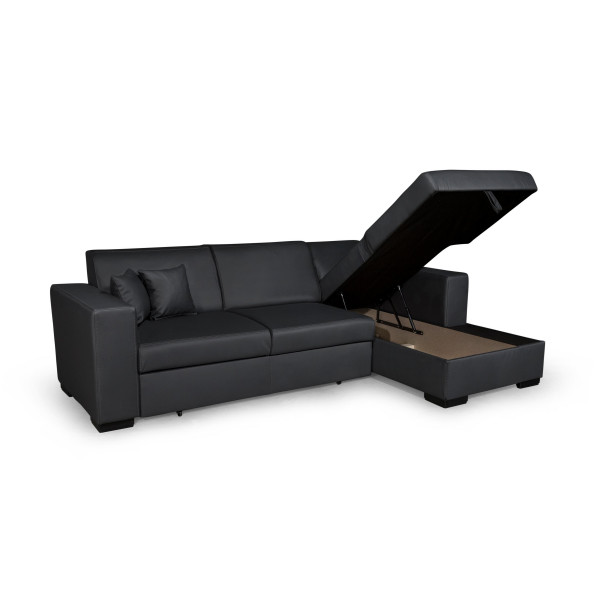 Ši didelė kampinė sofa-lova Caribi su nesenstančiu stiliumi suteikia tikrą sėdėjimo komfortą. Ji leis jums priimti visą šeimą ir apnakvindinti svečius dėl savo dvigulės lovos funkcijos. Taip pat yra didelis skyrius po šezlongu, kuriame galėsite laikyti pagalves, pledus... Su sofa yra du tonas į toną derantys pagalvės, kad būtų dar patogiau.