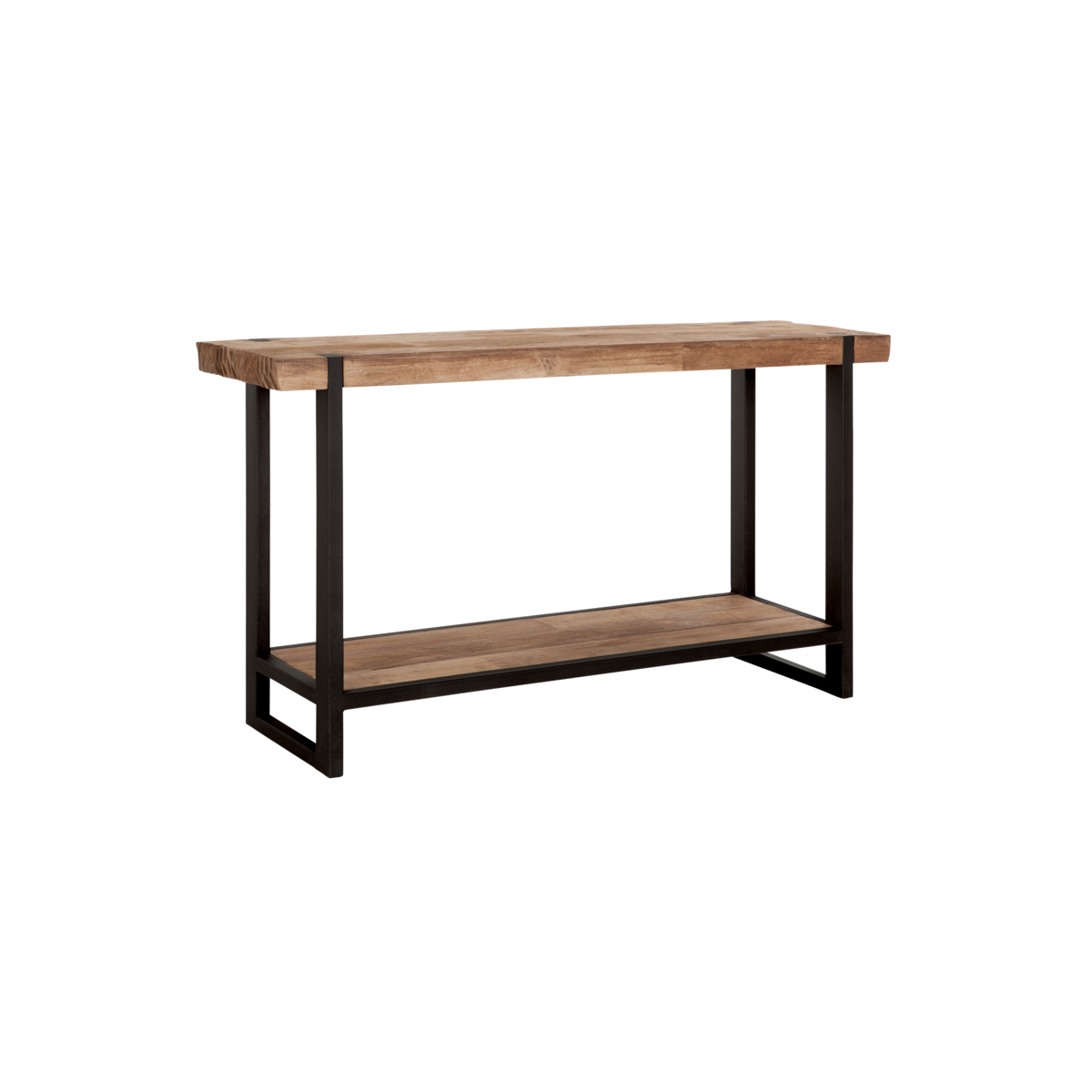Konsolinė staliukas Beam yra pagamintas iš perdirbtos tikmedžio medienos ir turi juodos metalo struktūrą. Staliuko matmenys yra 140x40x78 cm, o stalviršio storis yra 6 cm.
