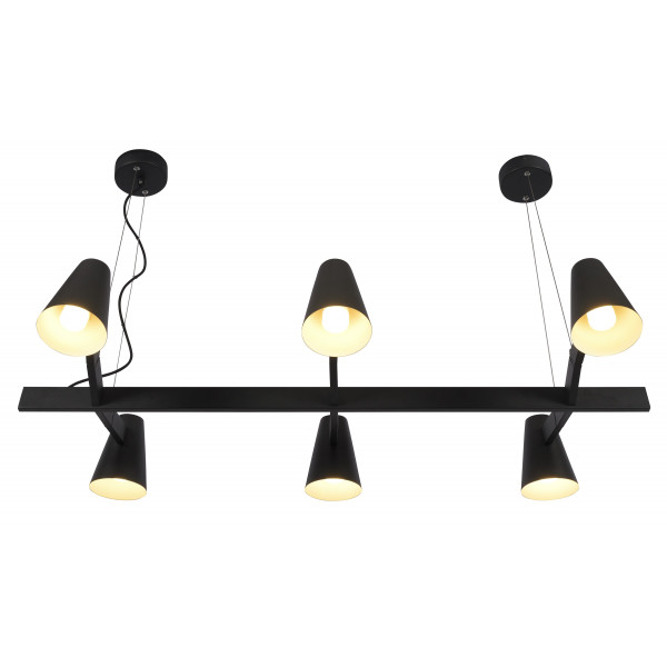 Biarritz pakabinamas šviestuvas yra su 6 reguliuojamomis rankomis, kurios užtikrina gerą apšvietimą. Apšvieskite geriausiai kambarius ir kampus. Jis pagamintas iš geležies ir turi E14 lizdus (lemputės nepridedamos). Pakabinamo šviestuvo matmenys yra 120x65 cm, o aukštis nuo 16 iki 290 cm.