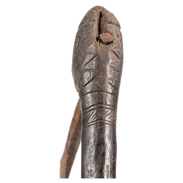 Šis jorubų apeigų kirvis, kilęs iš Nigerijos, yra puikus Afrikos meno ir kultūros pavyzdys. Jis datuojamas XX amžiaus viduriu ir yra 22x4x58,5 cm. Kirvį sudaro kaustytos geležies ašmenys ir raižyta medinė rankena. Rankeną puošia žmogaus figūra, vaizduojanti protėvį ar dievybę. Jorubų apeiginiai kirviai buvo naudojami oficialių ceremonijų metu arba turtui demonstruoti. Jie tarnavo kaip rango ir valdžios ženklas, ir buvo dėvimi ant peties, kai jų savininkas judėjo aplink. Tai unikalus kūrinys.