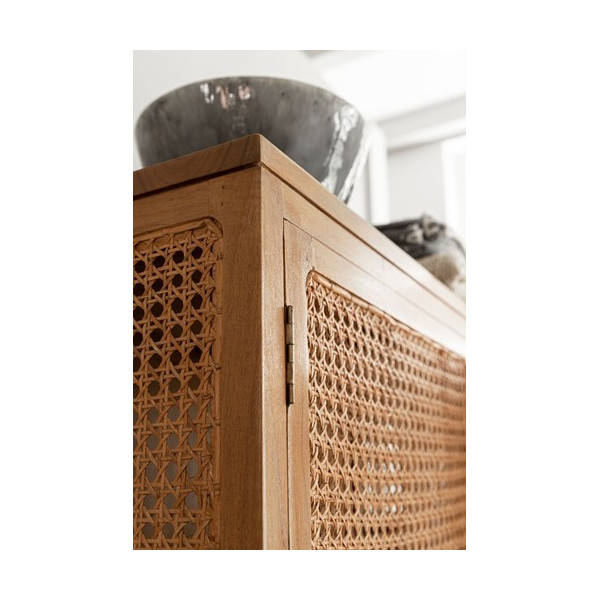Ši“Tribute” drabužių spinta yra ypač stilinga, kad sukurtų pramoninį įspūdį. Spinta pagaminta iš rotango, mindi medžio ir dirželio. Minkšta natūrali spalva suderinta su juodo metalo pagrindu. Jis susideda iš dviejų durų. Jis siūlo didžiulę saugojimo vietą.