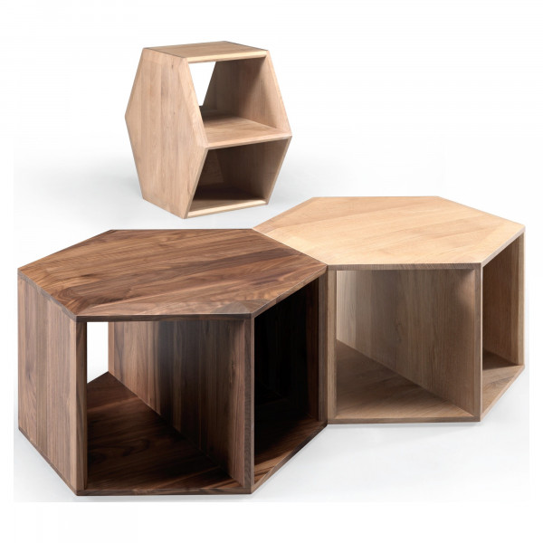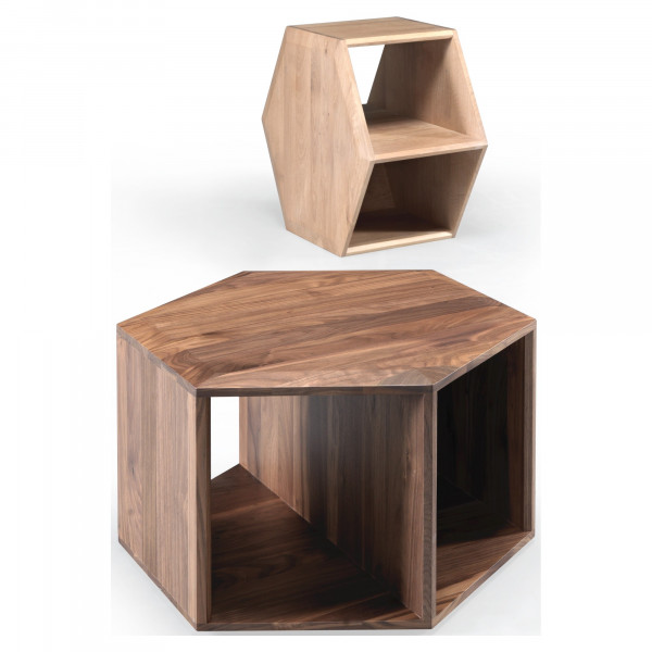 Hexa var novietot gan horizontāli, gan vertikāli, lai to izmantotu kā kafijas galdiņu vai kā palīggaldiņu. Tā izceļas ar savu mūsdienīgo estētiku un funkcionālo raksturu. Šis modulārais koncepts ļauj tai iekļauties dažādās telpās. Vairākus galdus var novietot kopā, lai izveidotu lielāku galdu. Šo dizainera Daniela Vieiras galdu izgatavo no masīvkoka riekstkoka un tā izmēri ir 54,6x63x35,5 cm.