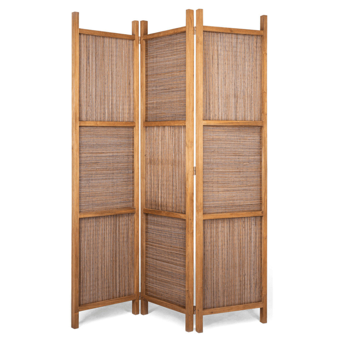 Coco dalītājs ir daudz vairāk nekā tikai telpu dalītājs. Ar rāmi, kas izgatavots no augstas kvalitātes reģenerēta tīkkoka, tas ir dekorēts ar rokām austām durvīm no kokosriekstu lapu centrālās ribas. Šī skaista tekstūra piebilst pieskārienu izsmalcinātību jūsu mājās. Mērīšana 144x3x195 cm, tas ir ideāli piemērots telpu sadalīšanai elegantā un praktiskā veidā. Coco separators ir gudra izvēle tiem, kas meklē unikālu un ekoloģisku mēbeļu.