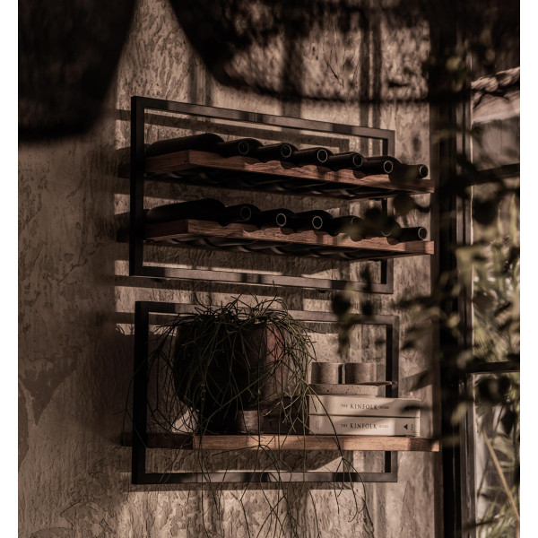 Šis A tipa 12 pudeļu vīna plaukts ir vīna plaukts, kas paredzēts perfekti saskaņošanai ar mūsu plauktiem. Praktisks un elegants, tas ļauj jums izcelt iecienītākās vīna pudeles jautrā veidā. Šis sienas vīna plaukts ir roku darbs no reģenerēta tīkkoka un rokām lodēta dzelzs. Jūs varat pakārt to atsevišķi vai apvienot to ar citiem Shelfmates pudeļu turētājiem vai plauktiem. A tips var turēt līdz 12 pudelēm vīna. Tās izmēri ir 65x25,5x35 cm.