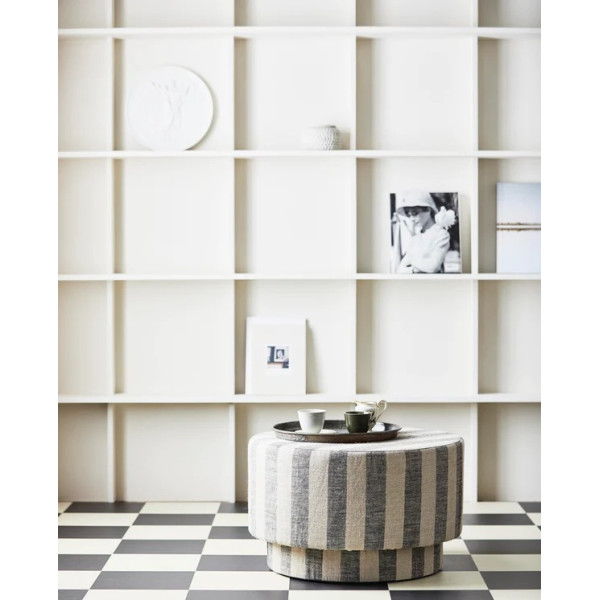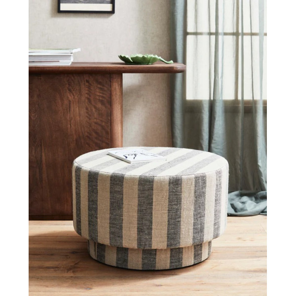 Ladoga pupiņu soma būs ideāli piemērota papildu apdarei un klasiskās un izsmalcinātās atmosfēras veidošanai dzīvojamā istabā. Tas ir ļoti ērts mēbeļu gabals, kas pārklāts ar linu, kam ir smilšu krāsas izskats un plašas mīkstas melnas svītras. Ladoga ir pieejams ideālā izmērā ø68x42.5 cm.