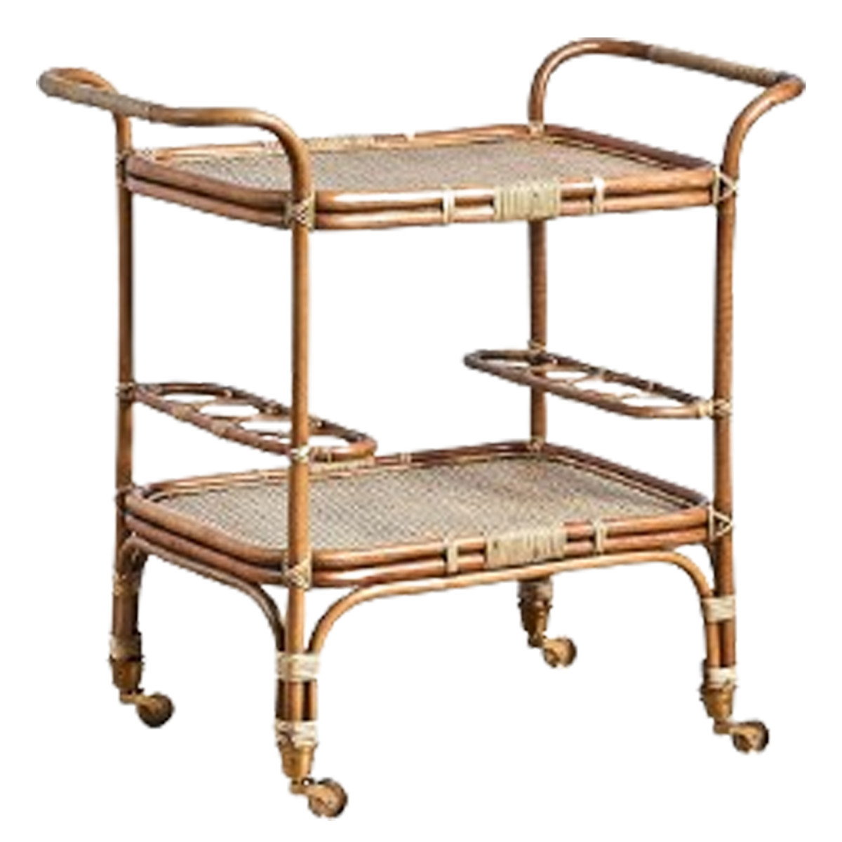 4027A Carlo ratim, kas izgatavots no izturīgas Indonēzijas rotangpalmas, ir antīka nokrāsa, kas ir universāla jebkuram gadījumam. Rotangpalmas bāra galds ir izgatavots no kvalificētu pītu amatnieku rokām darinātām kaklasaitēm, piedāvājot elegantu konstrukciju. Aprīkots ar četriem riteņiem, šo 45x89x82 cm bāra ratiņu var izmantot kā sānu galdu vai viegli pasniegt dzēri