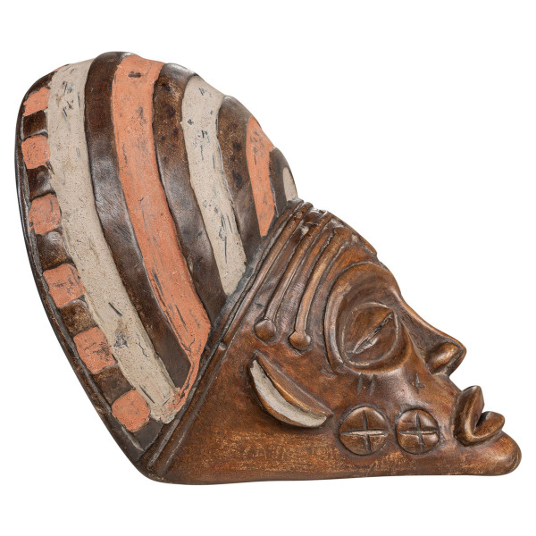 Šī izsmalcinātā sejas maska ar platām malām un augšdaļu pilnībā pārklāj dejotāja galvu. Tās virsmā ir modeļi, kas raksturīgi Lulua ciltij, imitējot tetovējumus, kas balstās uz virsmas, nevis tiek veidoti no materiāla. Šo masku raksturo plaša, smaila piere, redzamās acis, augšup pagriezts deguns un ovāla mute. Tas ir skaisti dekorēts ar oranžu un baltu kaolīnu. Šis unikālais gabals no DR Kongo izmērs ir 26x20x27 cm.