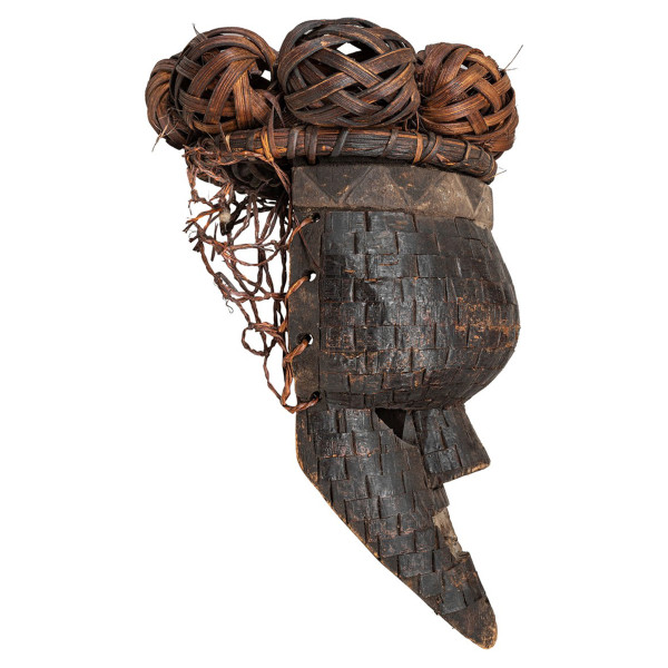 Mukinka Salampasu maska izceļas ar kupolveida pieri, kas dekorēta ar konservu, un blīvu frizūru, kas veidota no pītām bumbiņām. Viņa sejai ir uzliesmots deguns, smaili zobi un vara lentes, kas izraisa kara ceremonijas. Dažas maskas, ko izmantoja bēru un iniciāciju laikā, bija tik baidītas, ka to tikai pieminēšana nobiedēja sievietes un bērnus. Šis unikālais gabals, kas izgatavots no koka, vara un rafijas, kura izmērs ir 21x21,5x37 cm, datēts ar 20. gadsimtu un nāk no Zairas, no