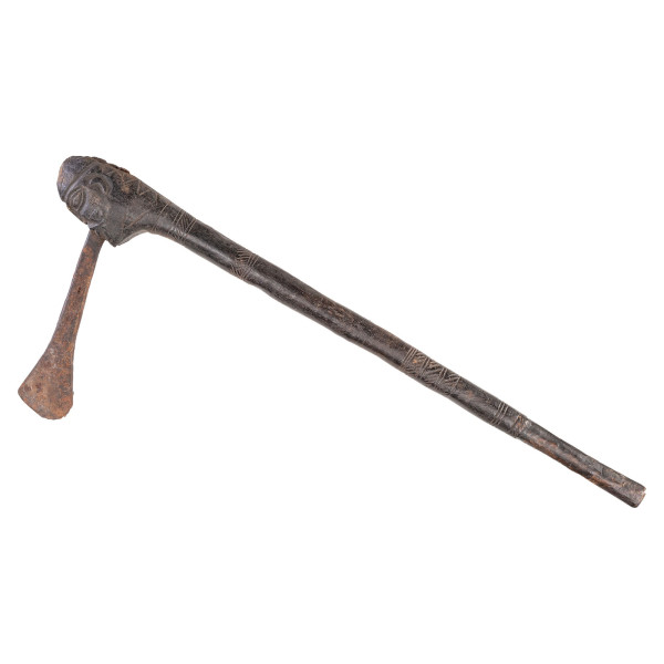 Šis jorubas svinīgais cirvis, kas cēlies no Nigērijas, ir lielisks Āfrikas mākslas un kultūras piemērs. Tā datēta ar 20. gadsimta vidu un izmēri ir 22x4x58,5 cm. Cirvis sastāv no kaltas dzelzs asmens un cirsts koka roktura. Rokturis ir dekorēts ar cilvēka figūru, kas attēlo senci vai dievību. Jorubas svinīgās cirvis tika izmantotas oficiālo ceremoniju laikā vai bagātības parādīšanai. Tie kalpoja kā ranga un autoritātes zīme, un tos nēsāja uz pleca, kad viņu īpašnieks pārvietojās apkārt. Tas ir unikāls gabals.